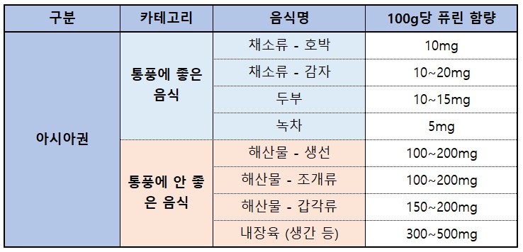 - 고퓨린 식품은 주 1회 이하로 제한
