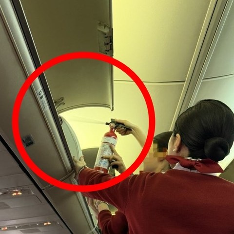 - 비행기 타자마자 보조배터리를 선반에 넣어버림